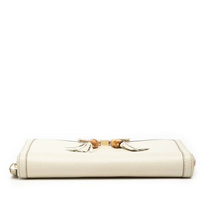グッチ バンブー リボン タッセル ラウンドファスナー 長財布 308000 ベージュ レザー レディース GUCCI 【中古】