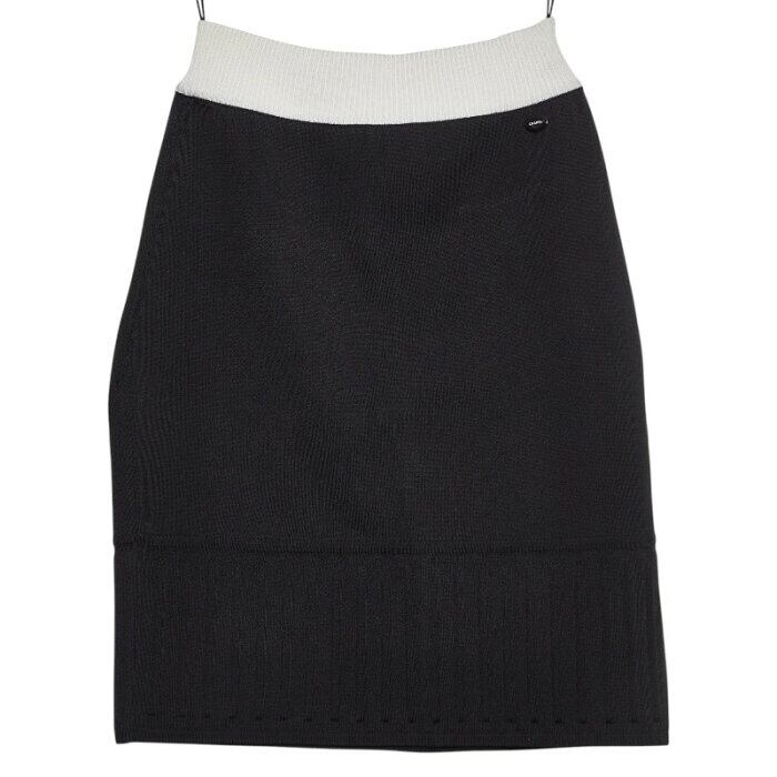 シャネル バイカラー ニットスカート サイズ34 P46120K05797 ブラック ホワイト レーヨン ポリエステル レディース CHANEL 【中古】