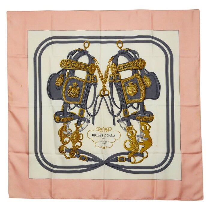 エルメス カレ90 BRIDES de GALA 式典用の馬勒 スカーフ ピンク マルチカラー レディース HERMES 【中古】