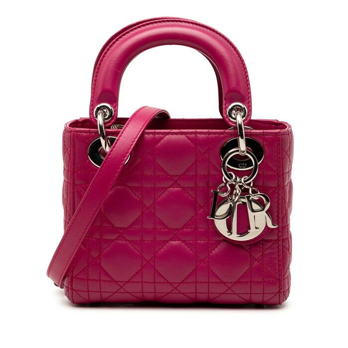 ディオール カナージュ レディディオール ミニ 斜め掛け ハンドバッグ ショルダーバッグ 2WAY パープル レザー レディース Dior 【中古】