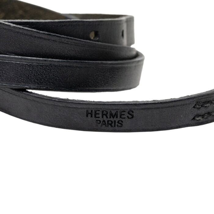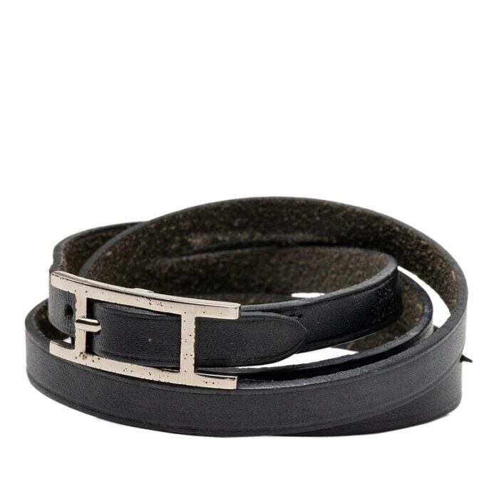 エルメス アピ 4連 ロング ブレスレット ブラック レザー レディース HERMES 【中古】