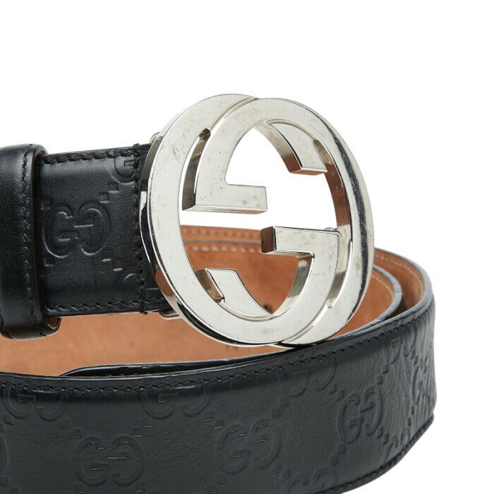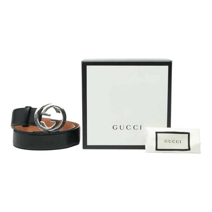 グッチ グッチシマ インターロッキングG ベルト サイズ:85/34 411924 ブラック レザー レディース GUCCI 【中古】