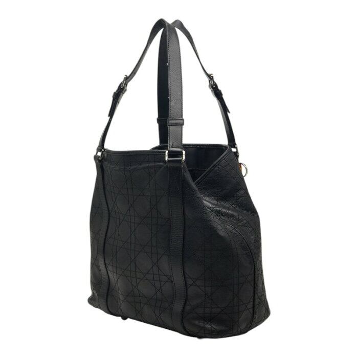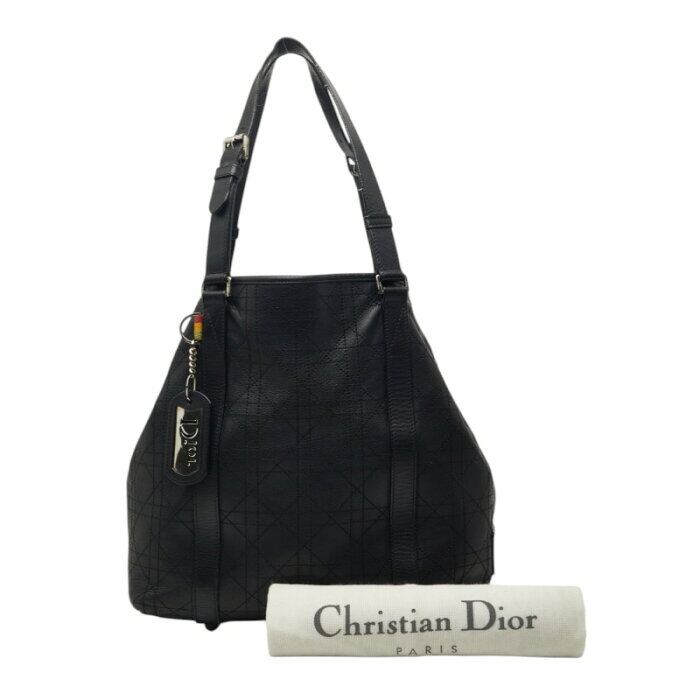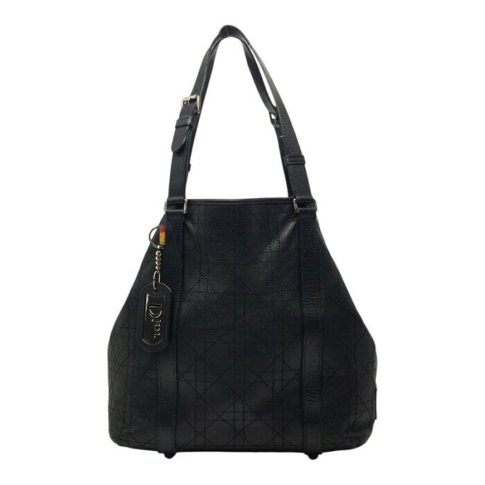 ディオール カナージュ ラスタ ロゴチャーム トートバッグ ブラック レザー レディース Dior 【中古】