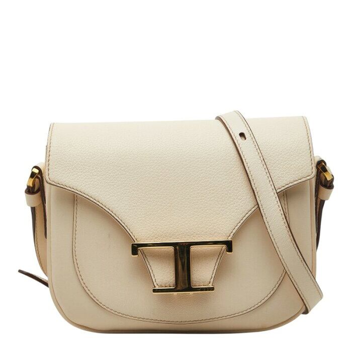 トッズ Tタイムレス 斜め掛け ショルダーバッグ ホワイト ゴールド レザー レディース TOD’S 【中古】