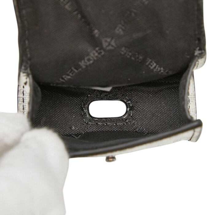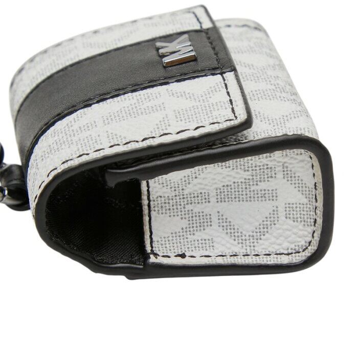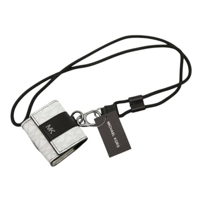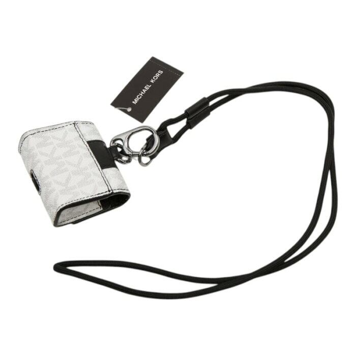 マイケルコース MKシグネチャー イヤホンケース AirPods エアポッズケース ネックストラップ付 ホワイト ブラック レザー レディース Michael Kors 【中古】
