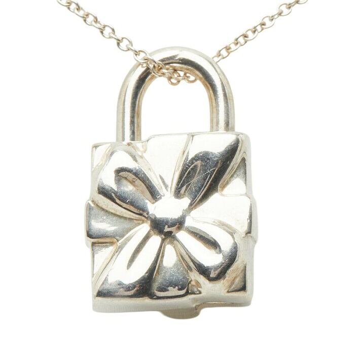 ティファニー プレゼントボックス ロック リボン ペンダント ネックレス シルバー SV925 シルバー レディース TIFFANY&Co. 【中古】