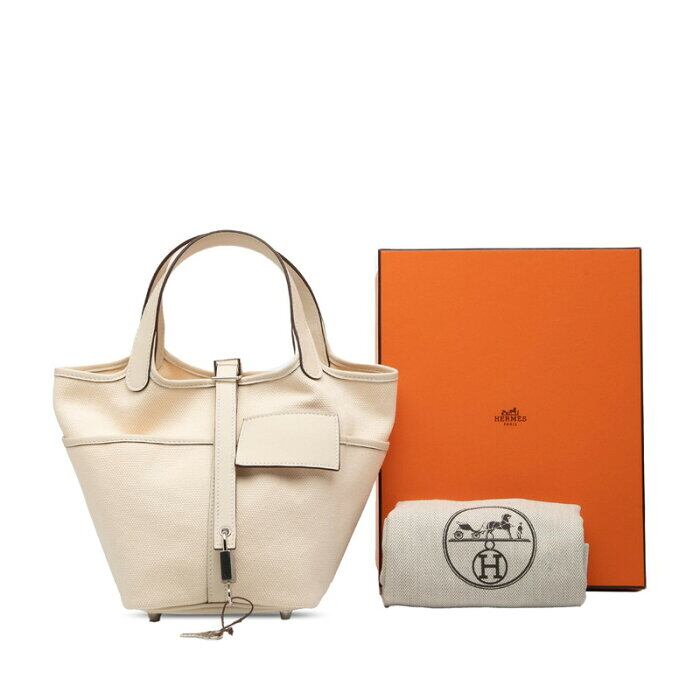 エルメス ピコタンロックPM カーゴ ハンドバッグ ナタ ホワイト系 ヴォースイフト トワルアッシュ レディース HERMES 【中古】
