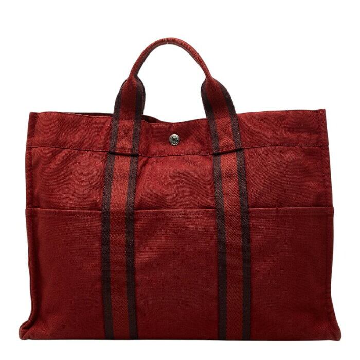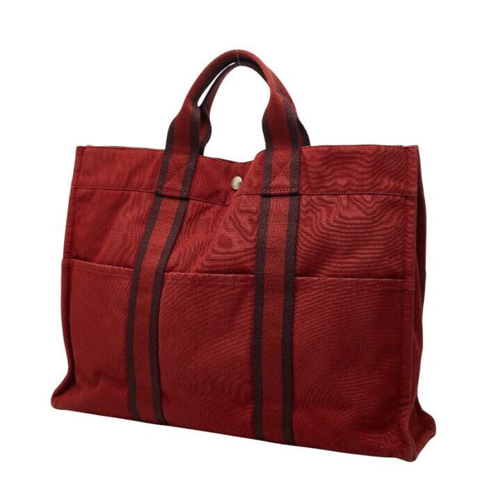 エルメス フールトゥMM ハンドバッグ トートバッグ レッド キャンバス レディース HERMES 【中古】