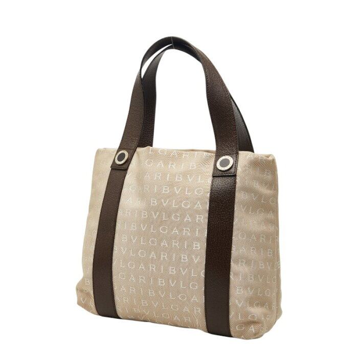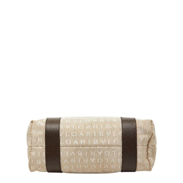 ブルガリ ロゴマニア ハンドバッグ ベージュ ブラウン キャンバス レザー レディース BVLGARI 【中古】