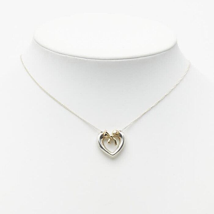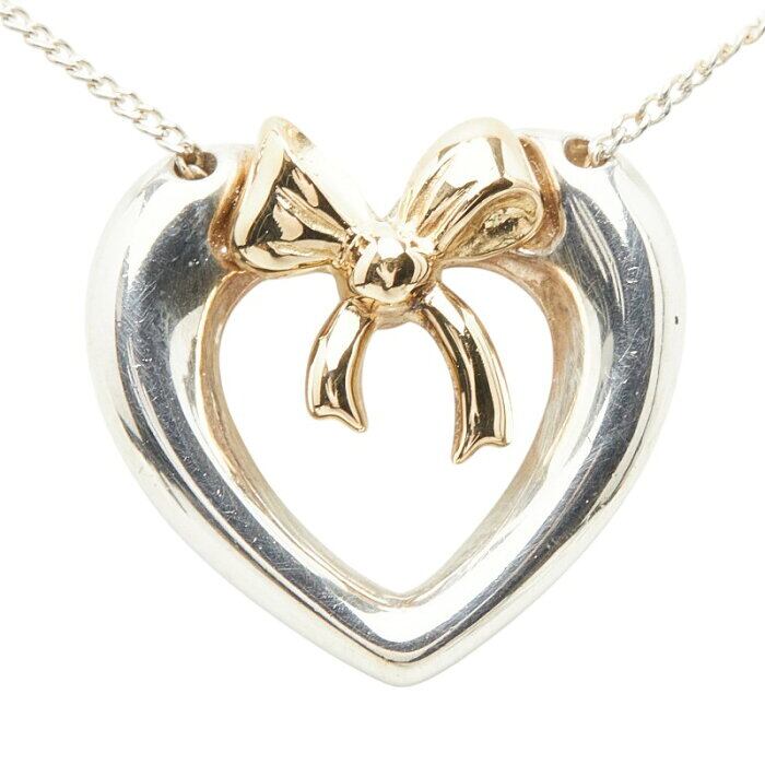 ティファニー ハートリボン チェーン ペンダント ネックレス SV925 シルバー K18YG イエローゴールド 750 レディース TIFFANY&Co. 【中古】