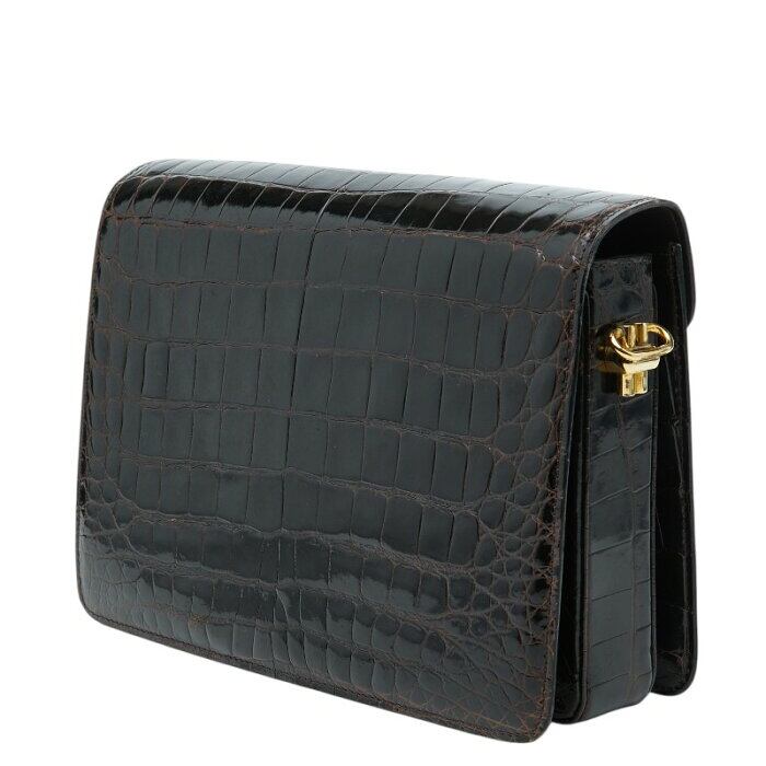 グッチ ヴィンテージ オールドグッチ クロコダイル型押し クラッチバッグ ブラウン レザー レディース GUCCI 【中古】