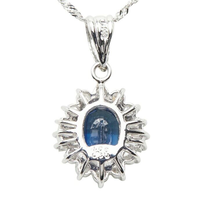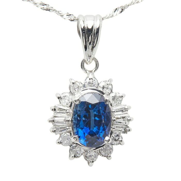 Pt900 プラチナ Pt850 プラチナ サファイア1.00ct ダイヤ0.30ct フラワーモチーフ ペンダント ネックレス レディース 【中古】
