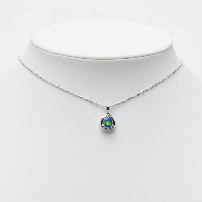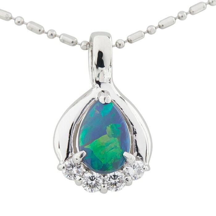 Pt900 プラチナ Pt850 プラチナ ブラックオパール0.65ct ダイヤ0.18ct しずく型モチーフ ペンダント ネックレス レディース 【中古】