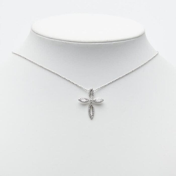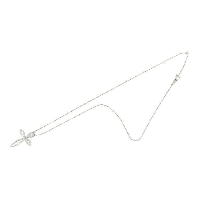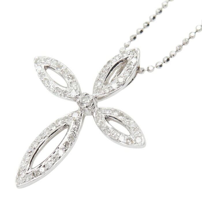 K18WG ホワイトゴールド ダイヤ0.25ct クロスモチーフ ペンダント ネックレス レディース 【中古】
