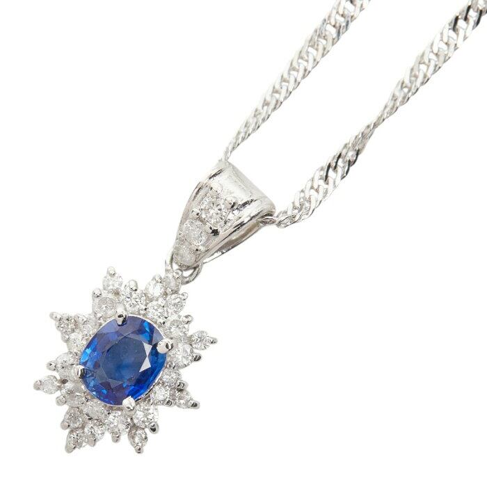 Pt900 プラチナ Pt850 プラチナ サファイア0.60ct ダイヤ0.30ct 雪の結晶モチーフ ペンダント ネックレス レディース 【中古】