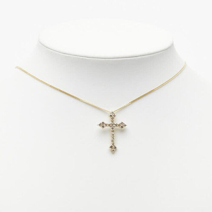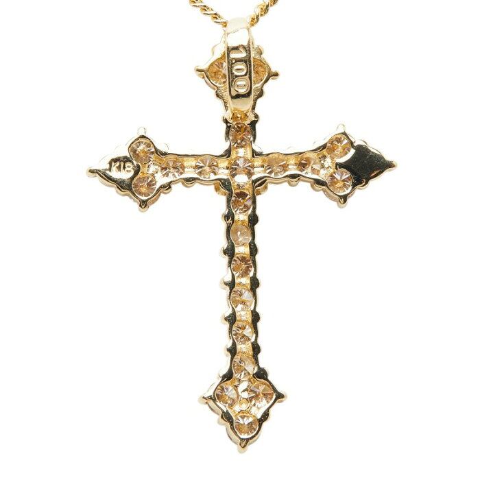 K18YG イエローゴールド ダイヤ1.00ct クロスモチーフ ペンダント ネックレス レディース 【中古】