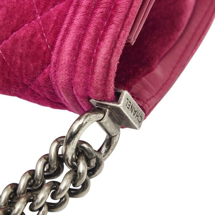 シャネル ココマーク ミニ ボーイシャネル チェーン ショルダーバッグ ピンク ベロア レザー レディース CHANEL 【中古】