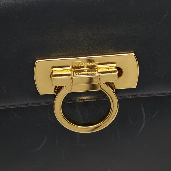 サルヴァトーレフェラガモ ガンチーニ ハンドバッグ ショルダーバッグ 2WAY ネイビー レザー レディース Salvatore Ferragamo 【中古】
