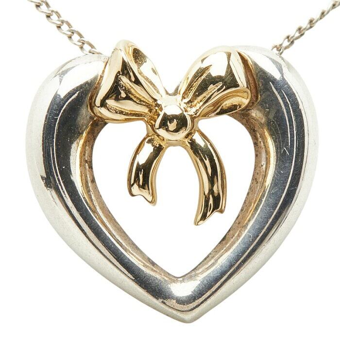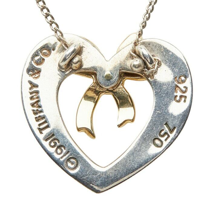 ティファニー ハートリボン ネックレス シルバー ゴールド SV925 シルバー K18YG イエローゴールド レディース TIFFANY&Co. 【中古】