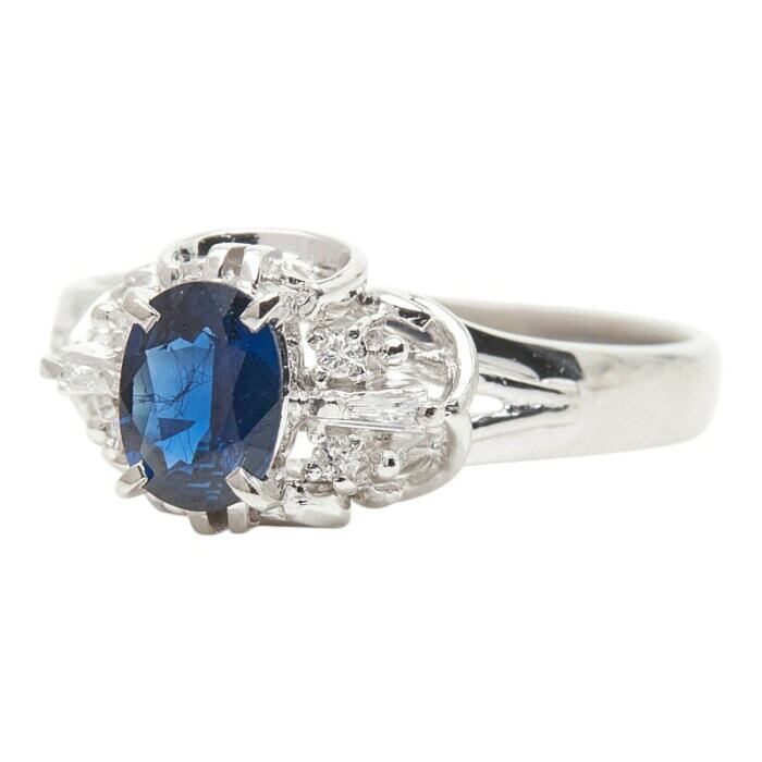 Pt900 プラチナ サファイア0.57ct ダイヤ0.05ct リング 指輪 レディース 9.5号 【中古】