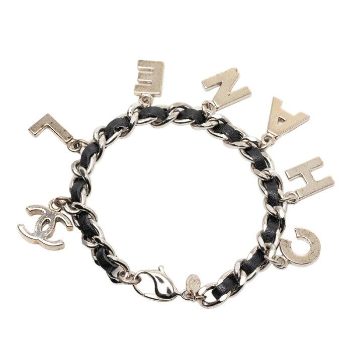 シャネル ココマーク ロゴ ブレスレット シルバー ブラック メタル レザー レディース CHANEL 【中古】