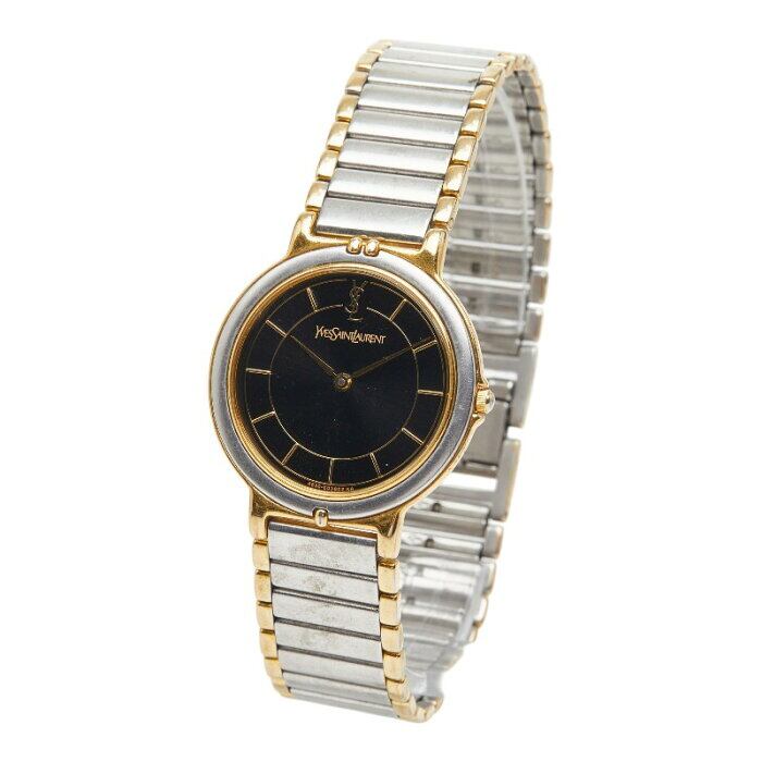 サンローラン 腕時計 クオーツ ブラック文字盤 ステンレススチール メッキ レディース SAINT LAURENT 【中古】