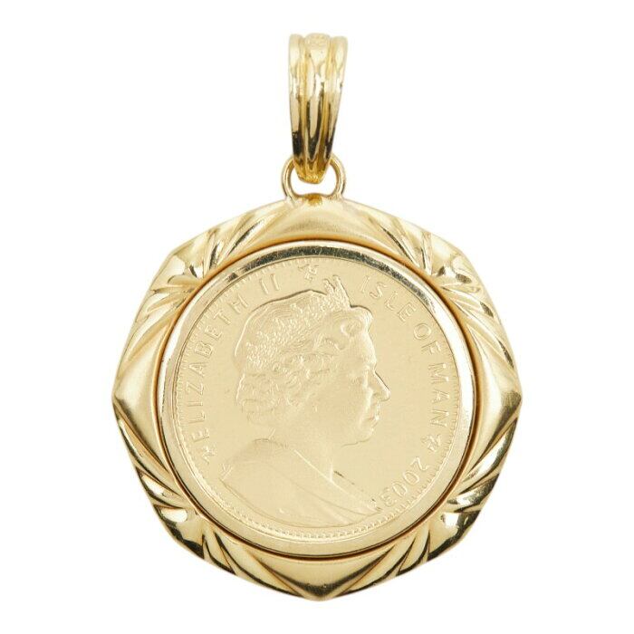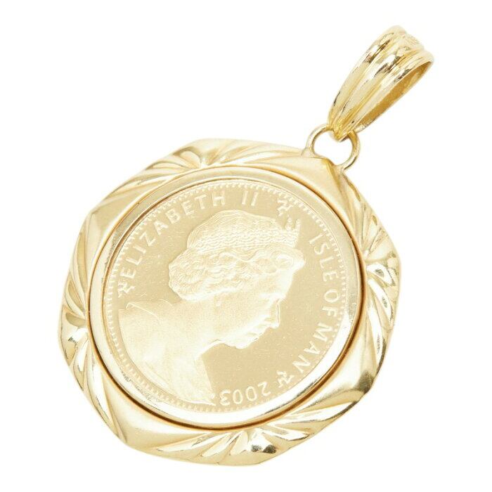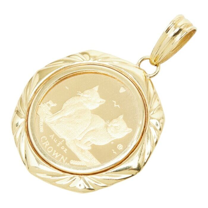 K24IG インゴット K18YG イエローゴールド マン島キャット金貨 2匹のバリニーズ子猫 エリザベス2世 1/5oz Balinese Kittens ペンダントトップ ネックレス レディース 【中古】