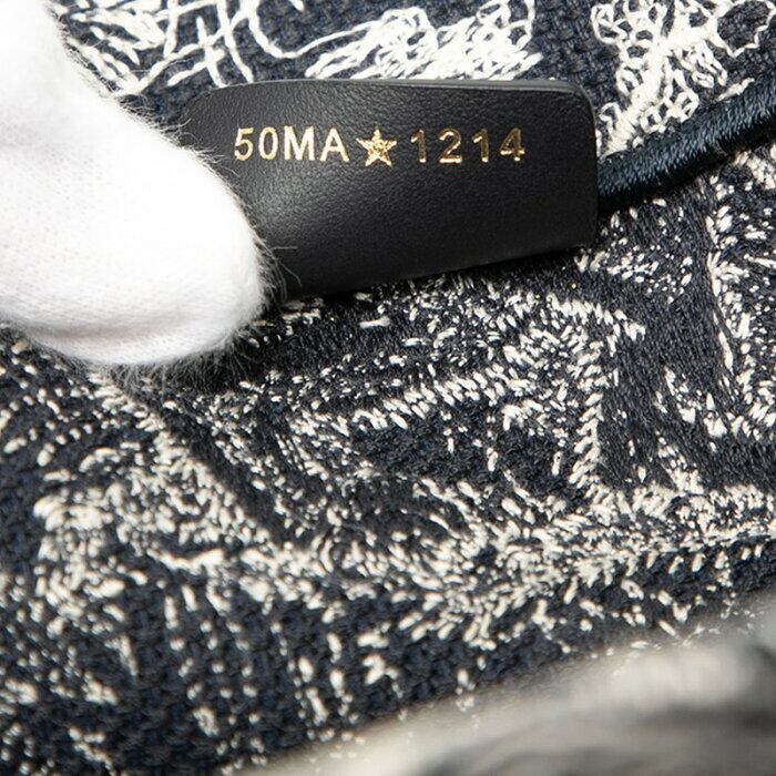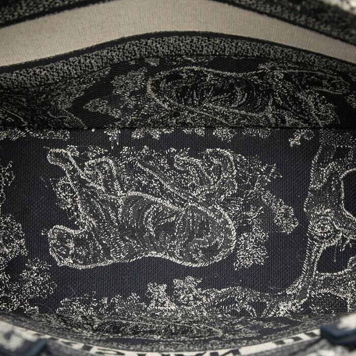 ディオール トワル ドゥ ジュイ リバース エンブロイダリー ブックトート ミディアム トートバッグ ネイビー ホワイト キャンバス レディース Dior 【中古】