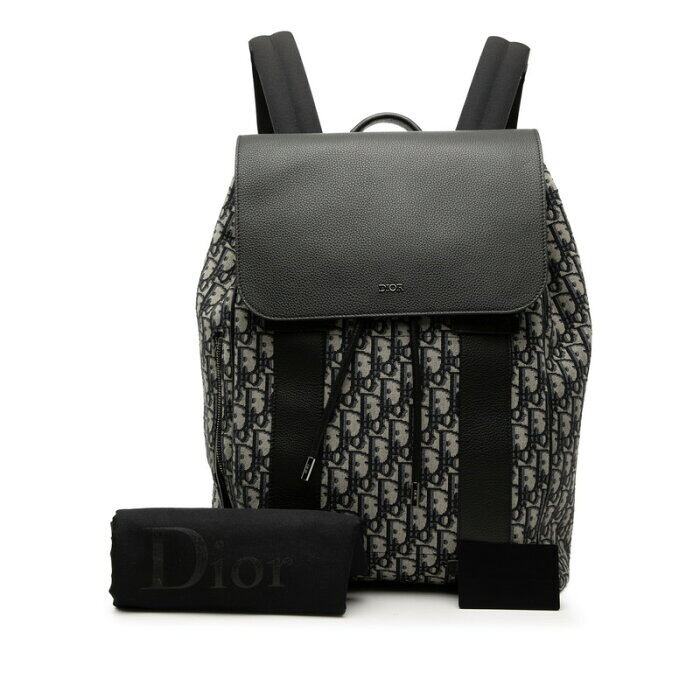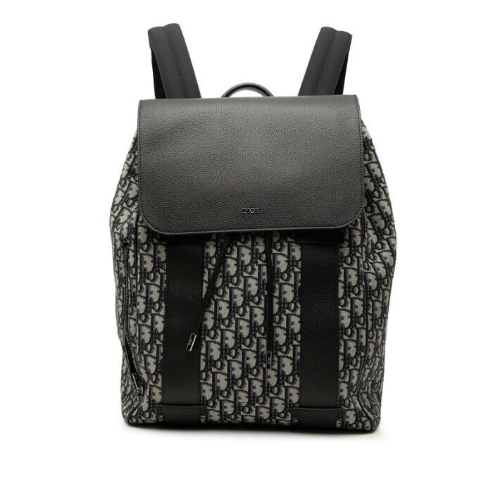 ディオール トロッター オブリーク ロゴジャガード バックパック リュック ブラック グレー レザー ファブリック レディース Dior 【中古】
