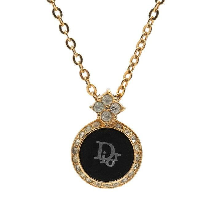 ディオール ロゴ ネックレス ゴールド ブラック メッキ ラインストーン レディース Dior 【中古】