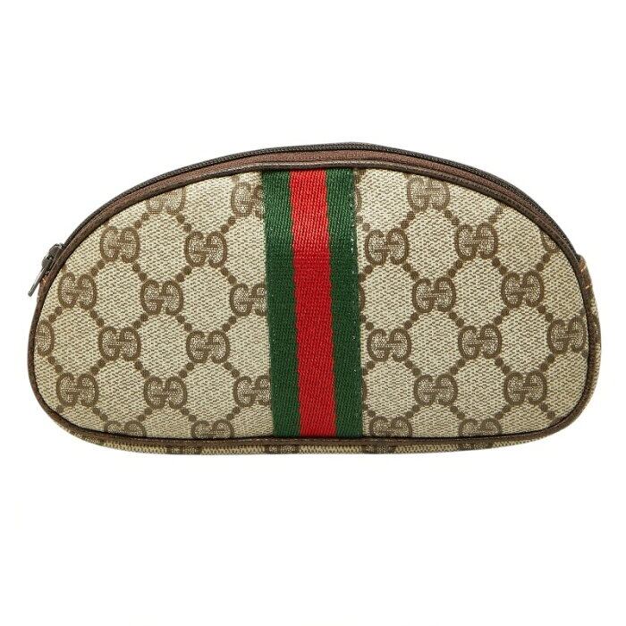 グッチ シェリーライン GGシュプリーム オールドグッチ ビンテージ ポーチ ベージュ PVC レディース GUCCI 【中古】