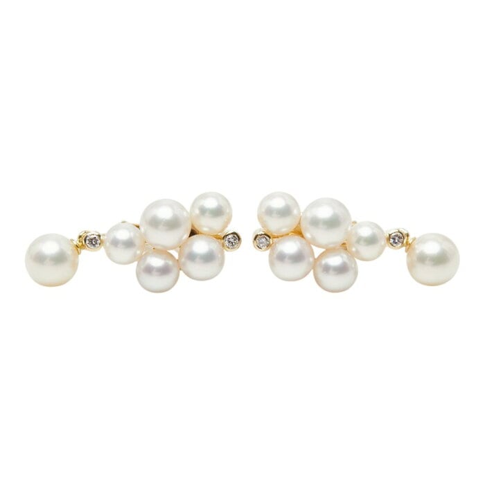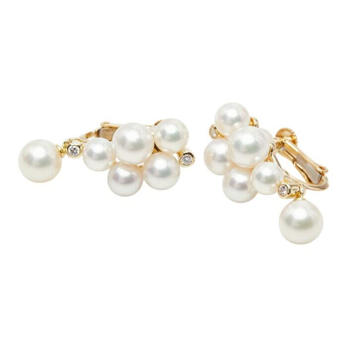 K18YG イエローゴールド アコヤパール4.5~6.1mm ダイヤ0.08ct イヤリング レディース 【中古】