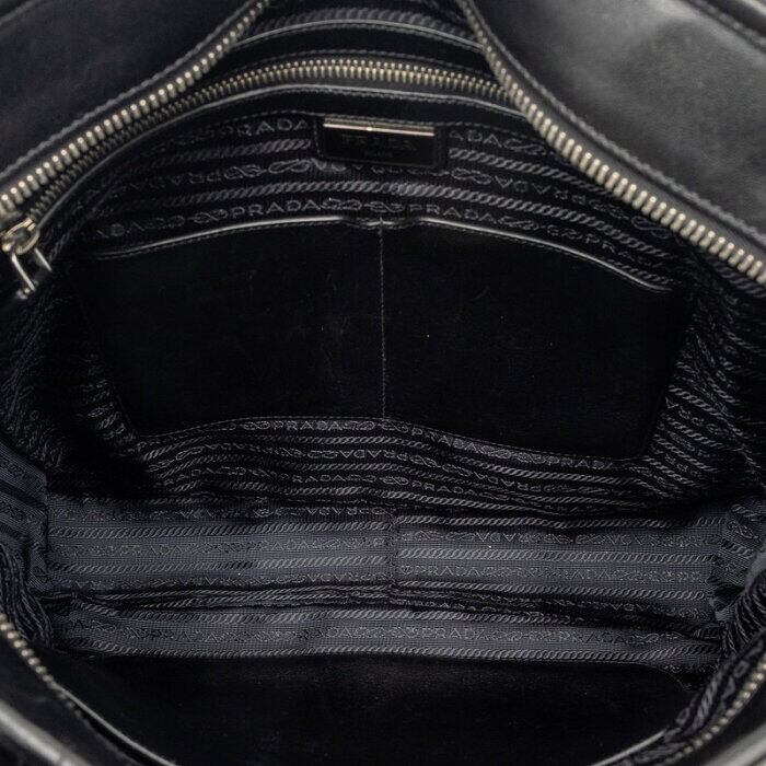 プラダ 三角ロゴプレート トートバッグ ハンドバッグ ブラック レザー メンズ PRADA 【中古】