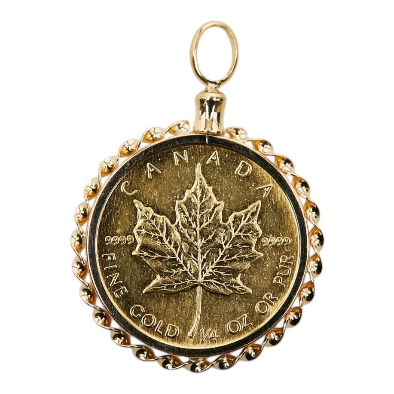 K24IG インゴット K18YG イエローゴールド メープルリーフ 1/4oz カナダ エリザベス2世 10ドル金貨 ペンダントトップ ネックレス レディース 【中古】