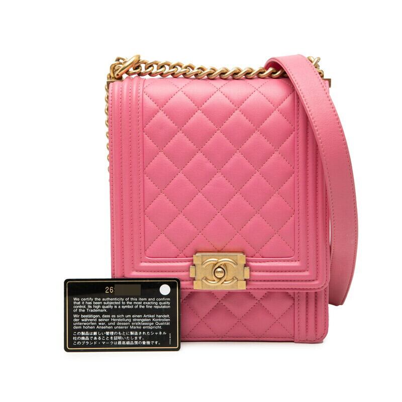 シャネル ココマーク マトラッセ ボーイシャネル チェーンショルダーバッグ ピンク ラムスキン レディース CHANEL 【中古】