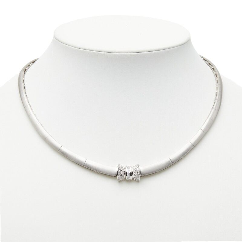 K18WG ホワイトゴールド ダイヤ1.15ct リボンモチーフ ネックレス レディース 【中古】