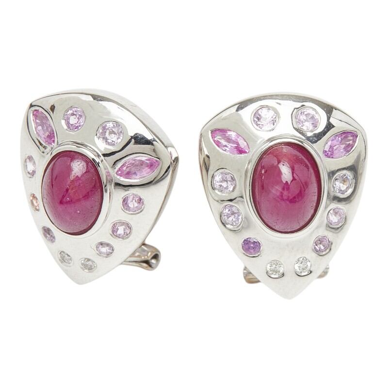 Pt900 プラチナ ルビー ピンクサファイア ダイヤ イヤリング ピアス レディース 【中古】