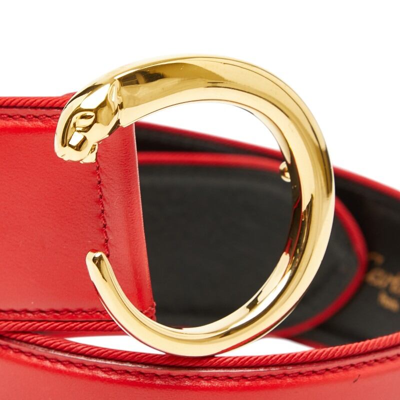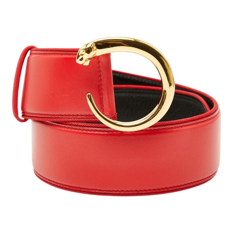 カルティエ パンテール ベルト サイズ:S レッド ゴールド レザー レディース CARTIER 【中古】