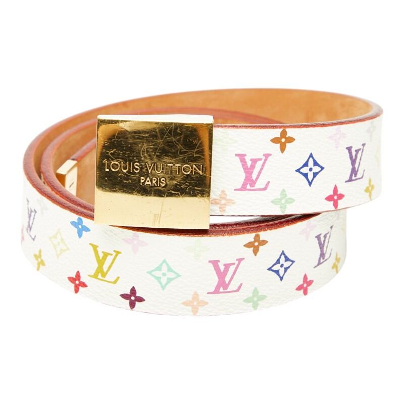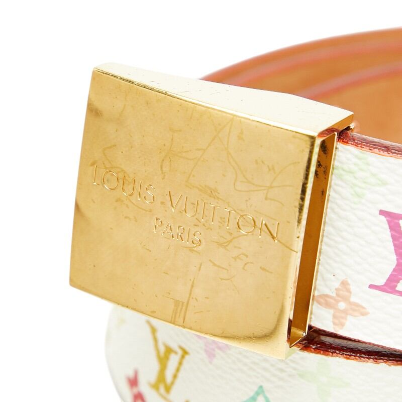 ルイ ヴィトン モノグラム マルチカラー サンチュールキャレ ベルト サイズ: 80/32 M9270U ホワイト ゴールド PVC レザー レディース LOUIS VUITTON 【中古】