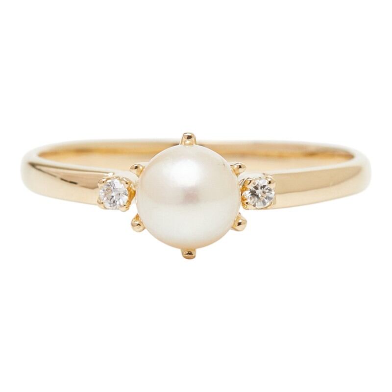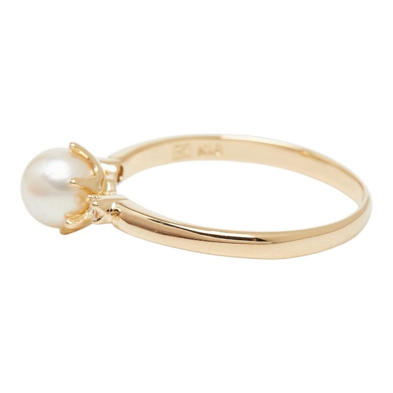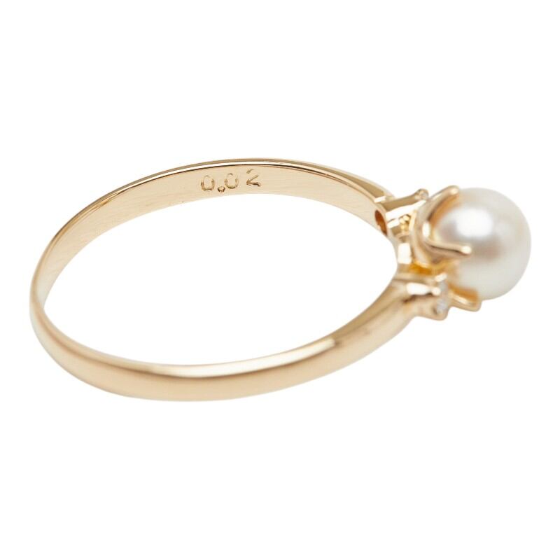K18YG イエローゴールド アコヤパール5.2mm ダイヤ0.02ct リング 指輪 レディース 10号 【中古】