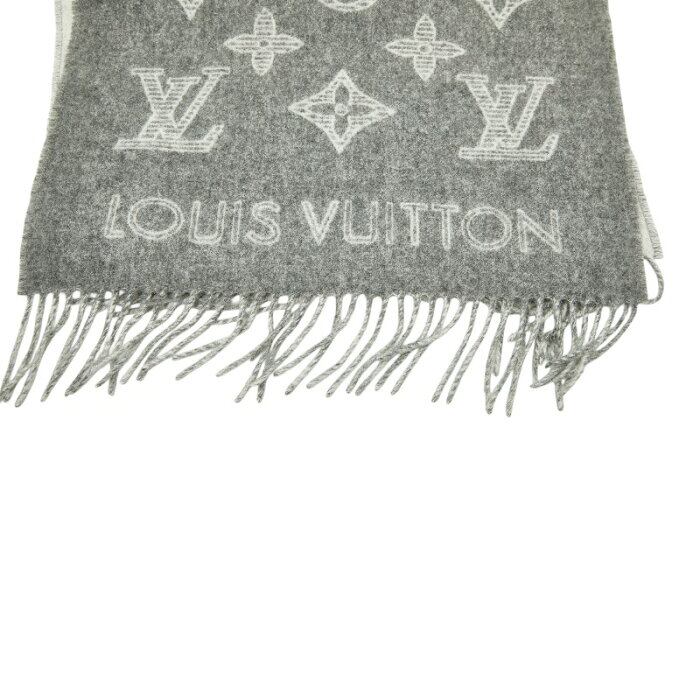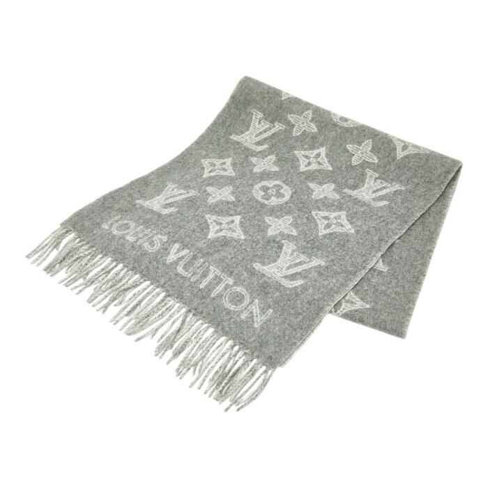 ルイ ヴィトン マフラー・モノグラム シャドウ マフラー M79126 グリ グレー ホワイト ウール 90% カシミヤ 10% レディース LOUIS VUITTON 【中古】