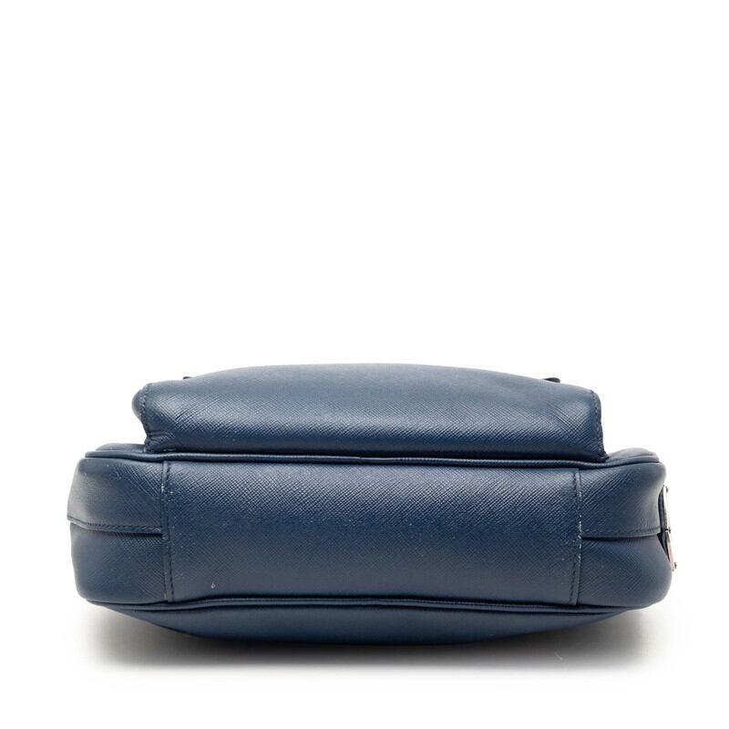 プラダ 三角ロゴプレート 斜め掛け ショルダーバッグ ブルー サフィアーノレザー レディース PRADA 【中古】