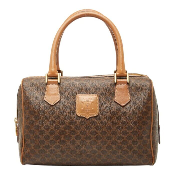 セリーヌ マカダム ミニボストンバッグ ハンドバッグ ブラウン PVC レザー レディース CELINE 【中古】