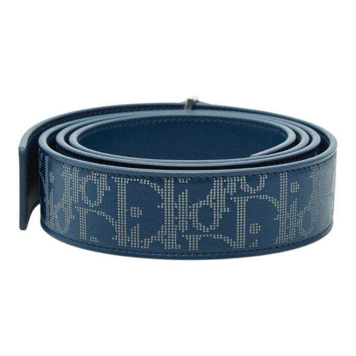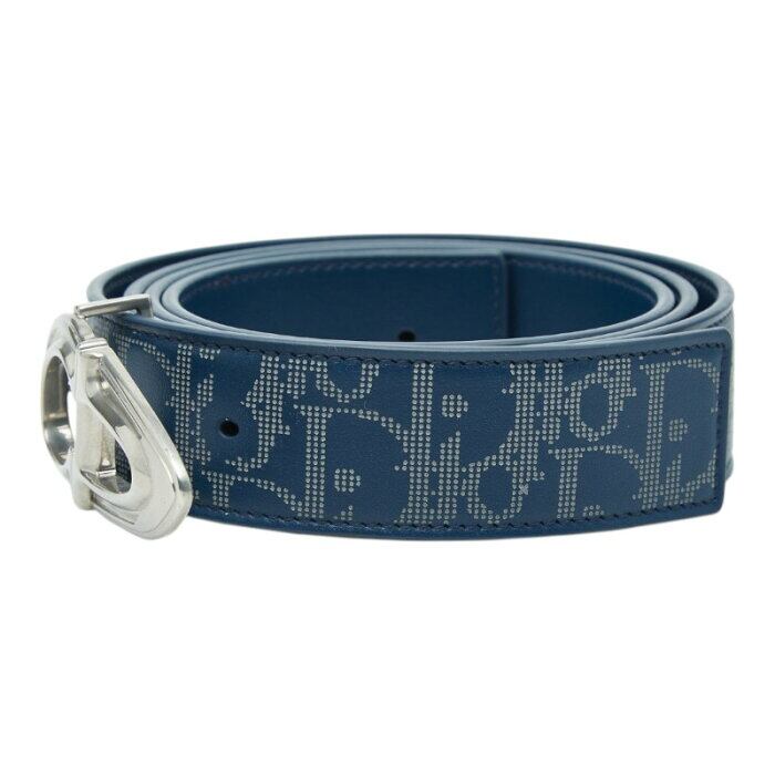 ディオール オブリーク ギャラクシー CD30 リバーシブルベルト ロゴ バックル ネイビー レザー メンズ Dior 【中古】