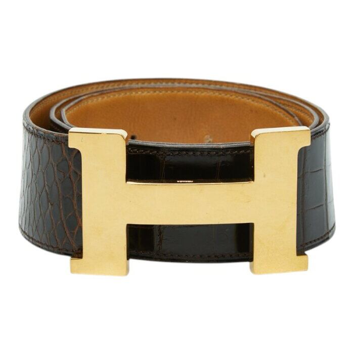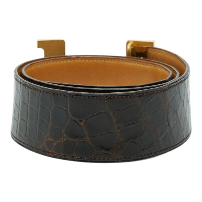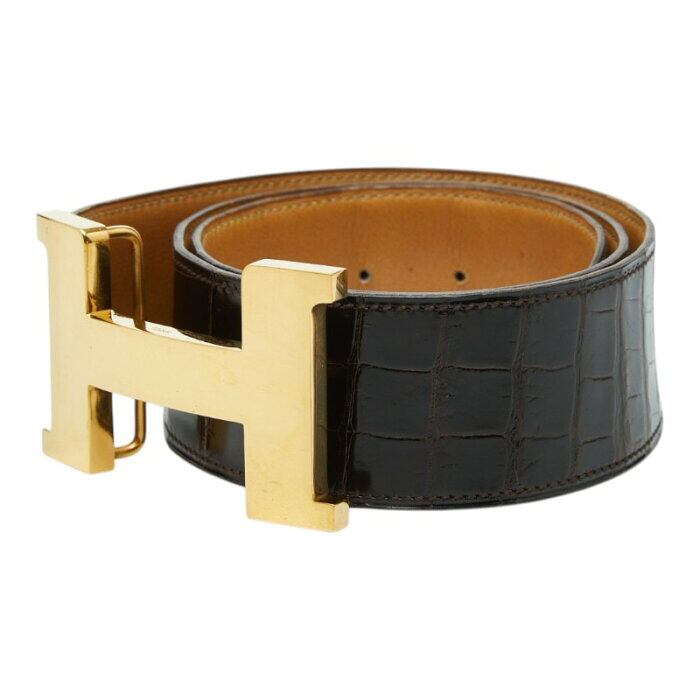 エルメス コンスタンス Hベルト ヴィンテージ ブラウン クロコダイル レザー メンズ HERMES 【中古】