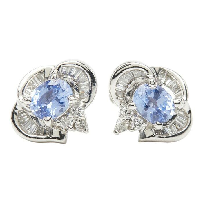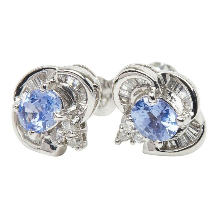Pt850 プラチナ ダイヤ0.36ct サファイア0.41ct サファイア0.43ct スタッドピアス ピアス レディース 【中古】