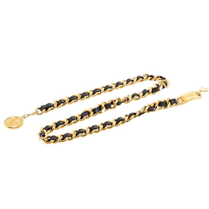 シャネル ココマーク 31 RUE CAMBON チェーンベルト ブラック ゴールド レザー メッキ レディース CHANEL 【中古】