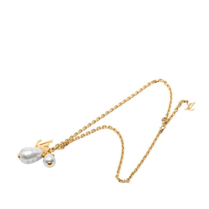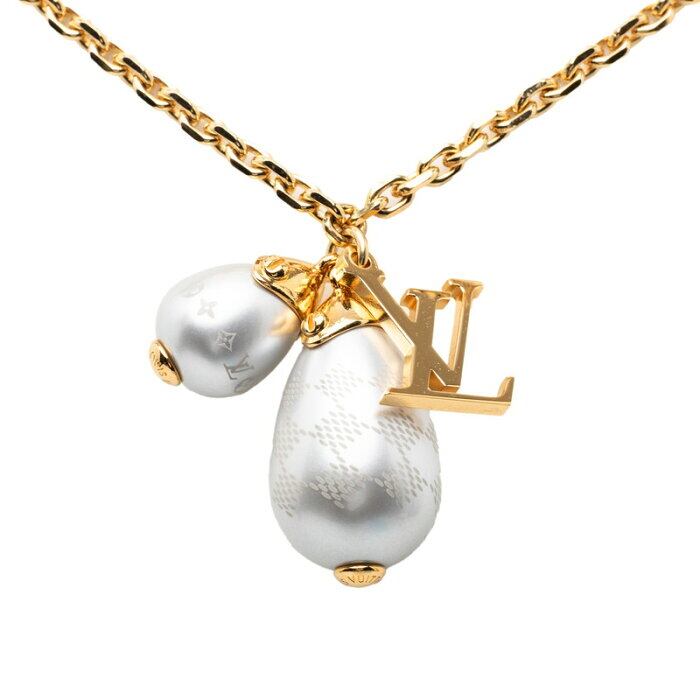 ルイ ヴィトン ダミエ パンダンティフ パール ネックレス M66322 ゴールド シルバー メッキ レディース LOUIS VUITTON 【中古】
