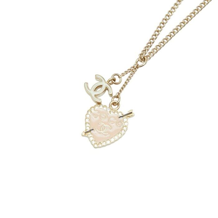 シャネル ココマーク ハート&アロー ラインストーン ペンダント ネックレス 10P ゴールド ピンク メッキ エナメル レディース CHANEL 【中古】