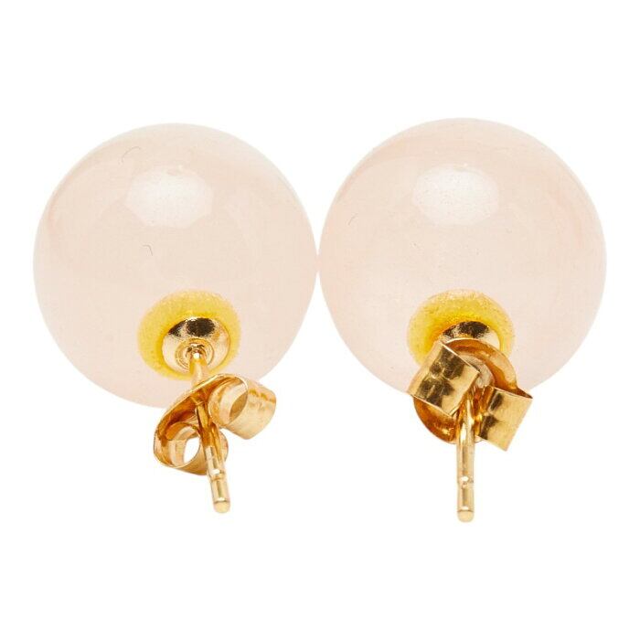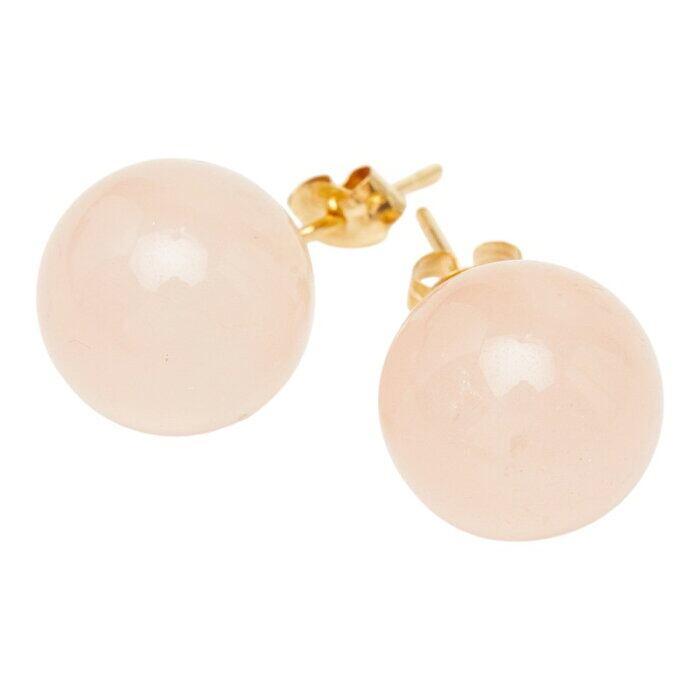 K18YG イエローゴールド ローズクォーツ9.8~10.0mm ピアス レディース 【中古】